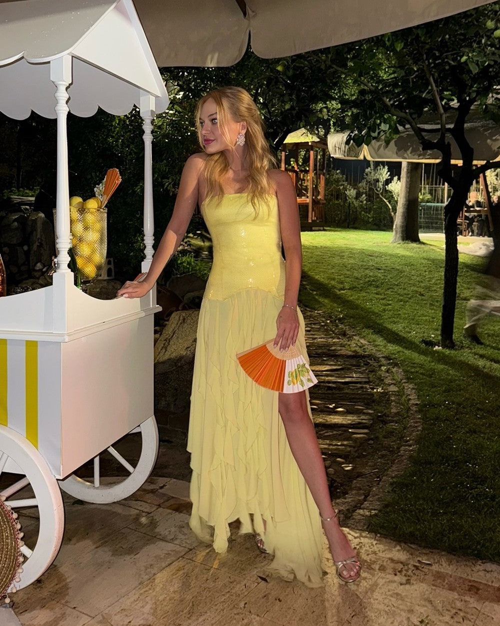 Yellow Halter Gown with Bow Detail & Beaded Sequin Embellishment