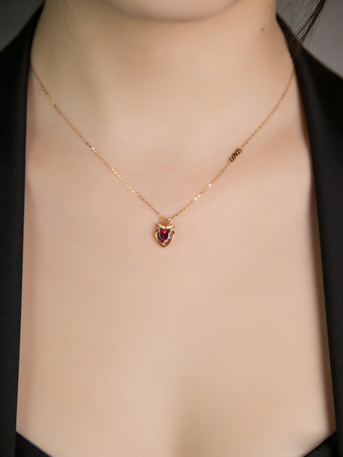 "Heart's Delight" Collection 18K Yellow Gold Garnet Pendant Necklace -
